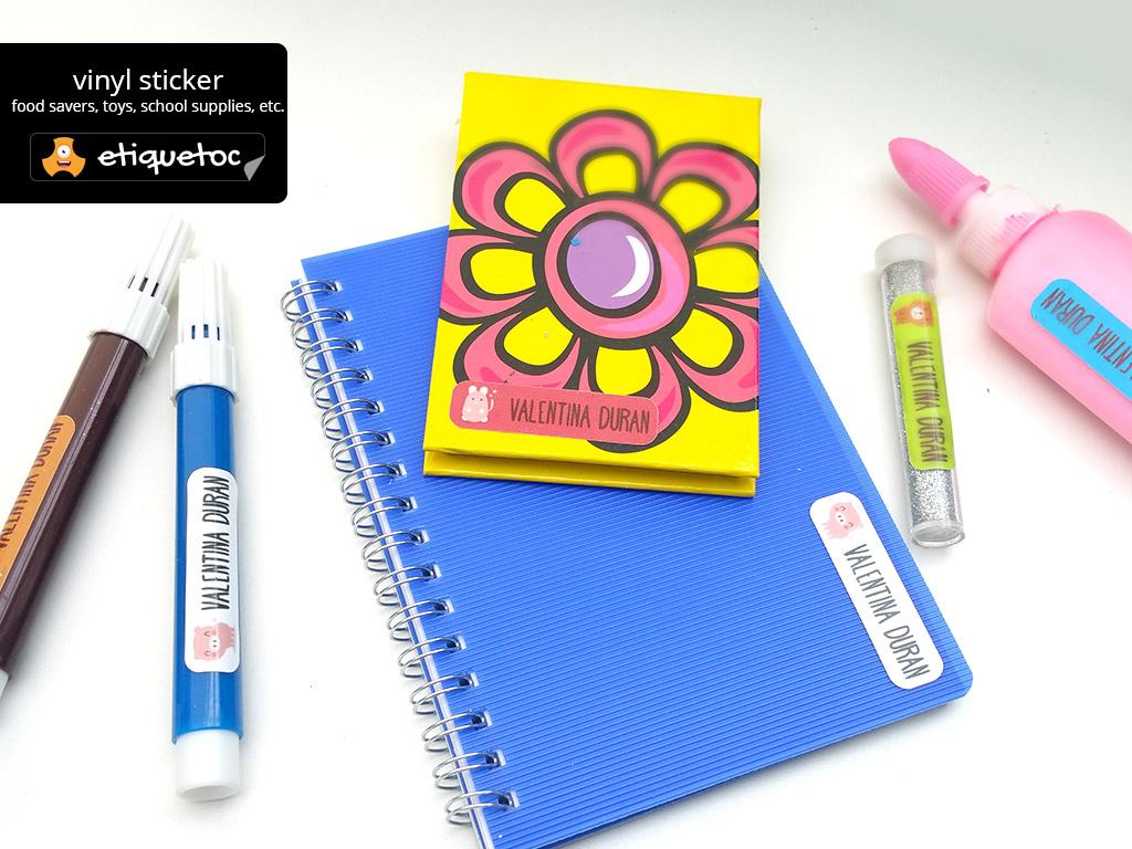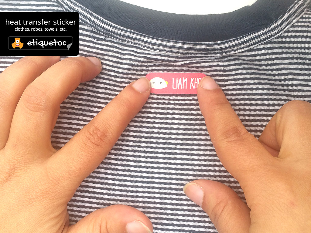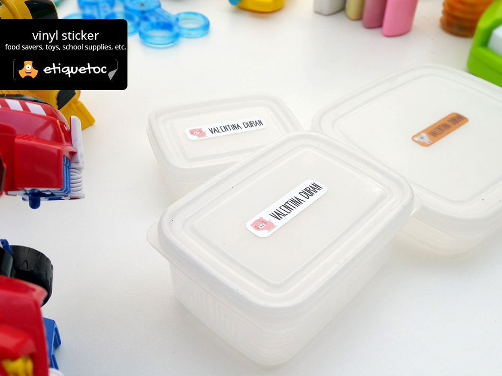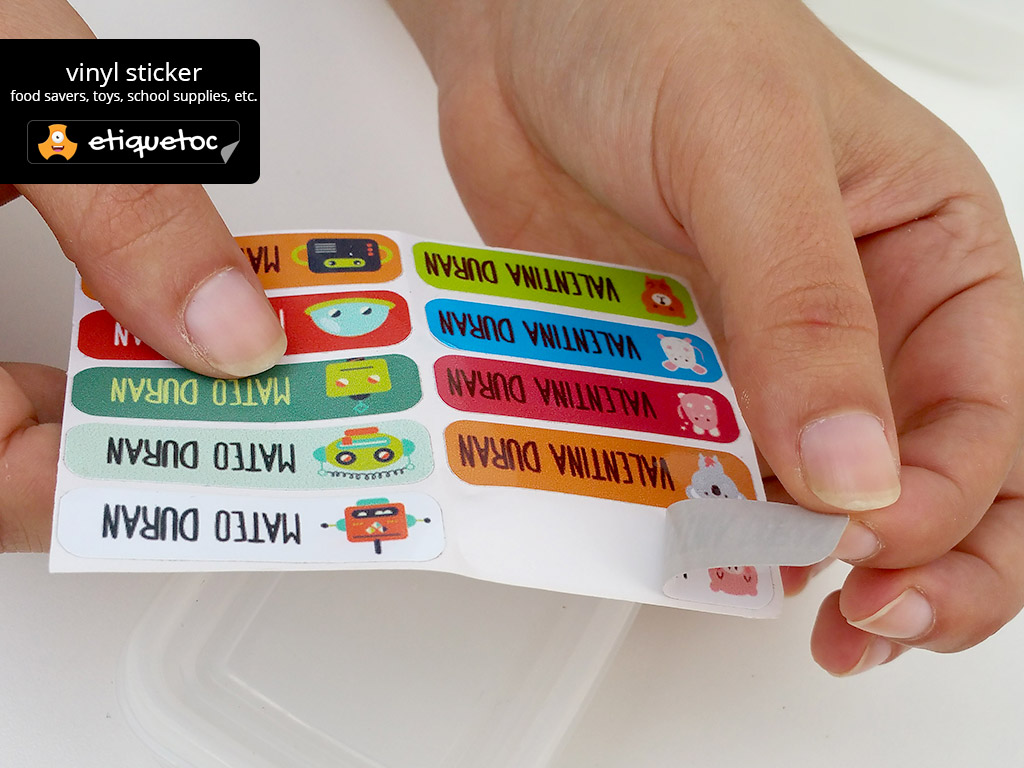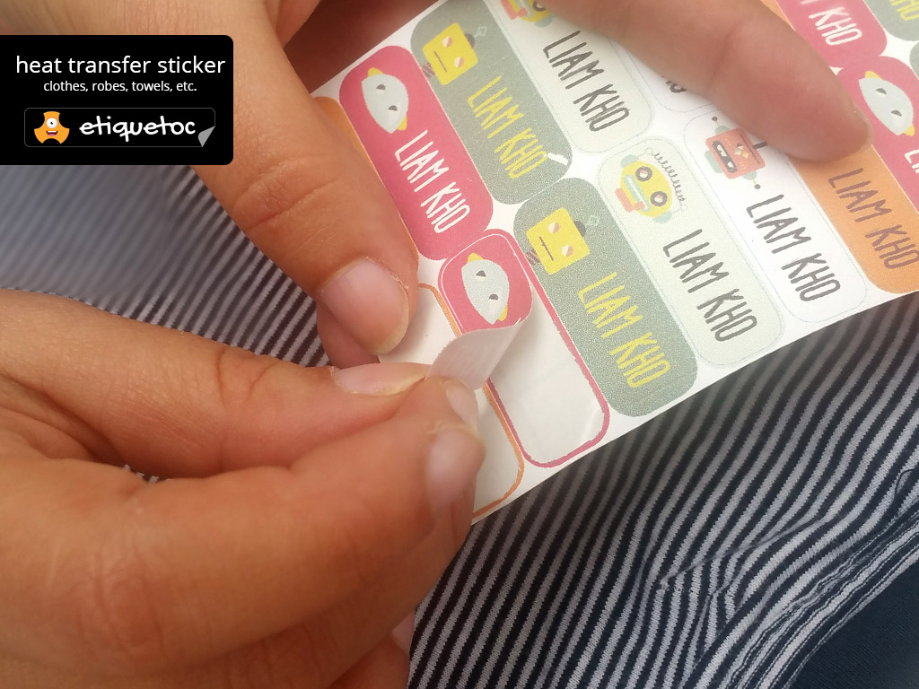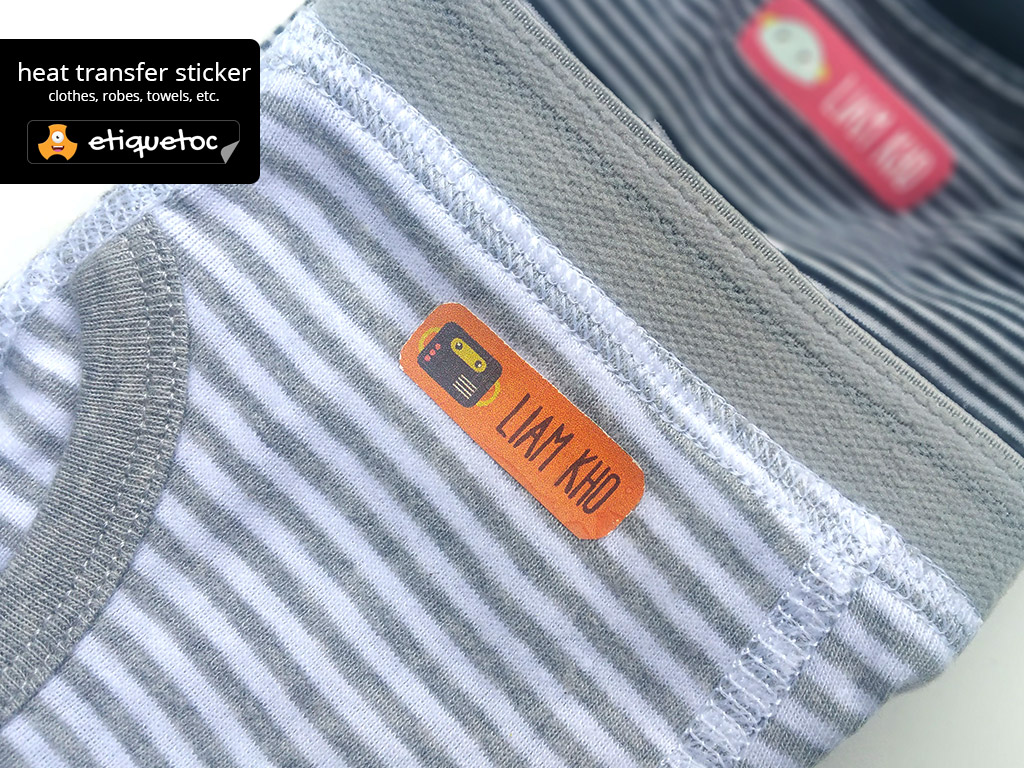 The name labels come in two types, vinyl for school supplies, baby bottles, food savers, notebooks, shoes etc and transfer for clothes, aprons, bags, etc.
